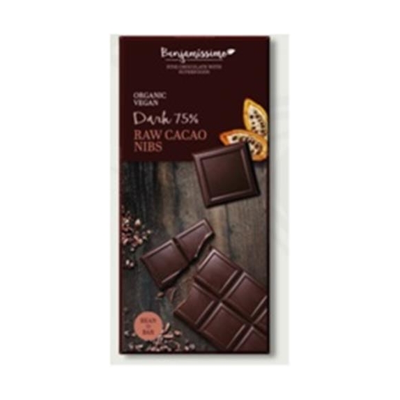 Miazga kakaowa*, cukier trzcinowy nierafinowany*, tłuszcz kakaowy* 5%, wanilia Bourbon*. Zawartośc kakao min. 75%. *składniki pochodzące z kontrolowanych upraw ekoogicznych