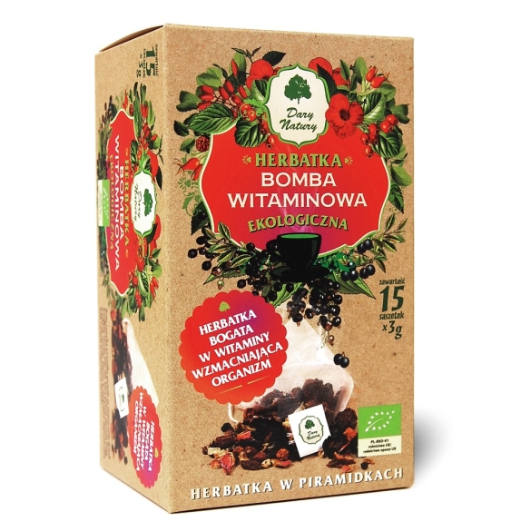 Owoc róży*, tarniny*, jabłka*, berberysu*, bzu*, jarzębiny*, czarnej porzeczki*, maliny*, głogu*, kwiat hibiskusa*, płatki róży* (*certyfikowany składnik ekologiczny).