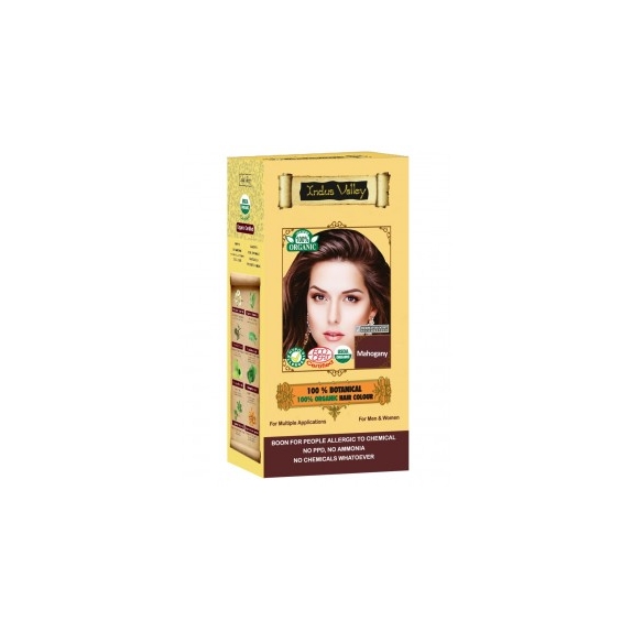 Ziołowa farba z henną, MAHOŃ, w 100% ekologiczna, CERTYFIKOWANA - ECOCERT, VEGE, HALAL, 120 g, Indus Valley.