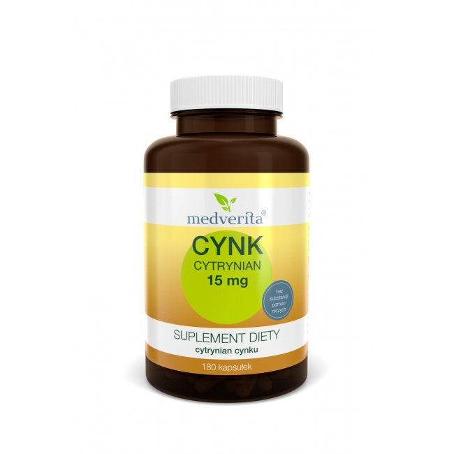 Cynk Cytrynian 15mg 180 kapsułek Medverita opinie