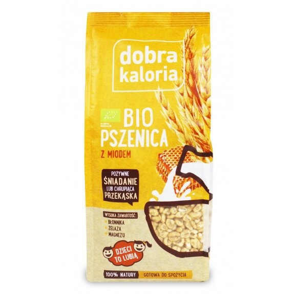 Ekspandowane ziarna pszenicy* 74%, melasa buraczana*, miód* 5% (*certyfikowany składnik ekologiczny).