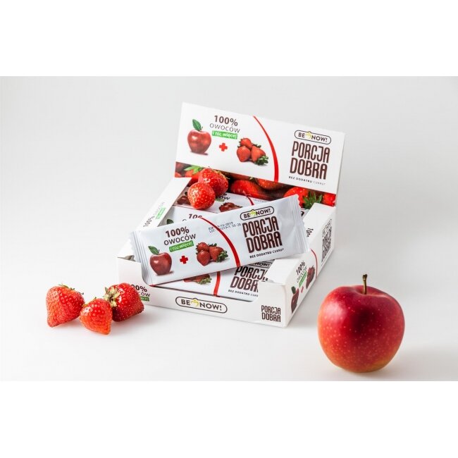 Dzięki dojrzałym czerwonym jabłkom i słodkim truskawkom ta pyszna i zdrowa przekąska jest uwielbiana przez dzieci i dorosłych. Bogata w witaminę C i potas. Ta wyśmienita i zdrowa przekąska jest nie tylko „zaspokajaczem” głodu na coś słodkiego, ale dostarcza również cennych wartości odżywczych, niezbędnych do codziennego funkcjonowania.