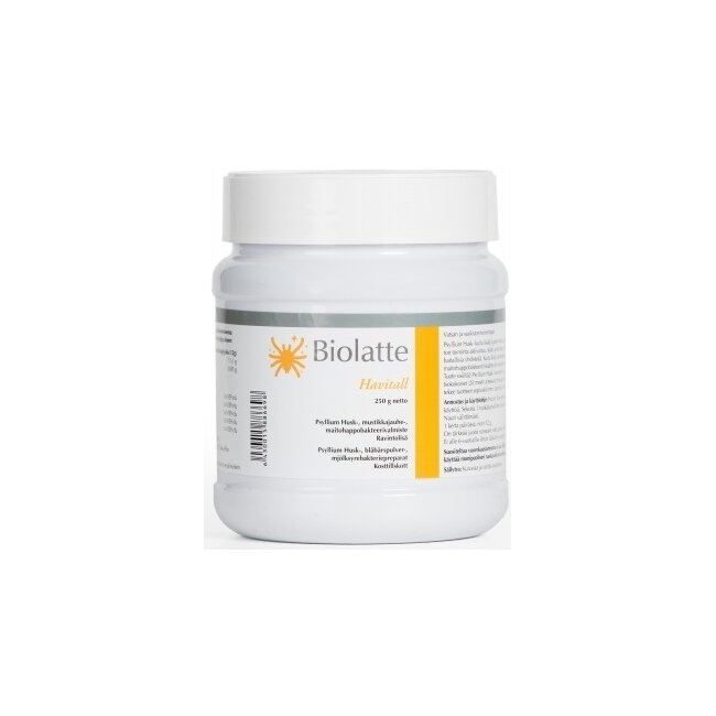 Biolatte Havitall - Bakterie kwasu mlekowego połączone z babką płesznika i sproszkowaną jagodą. Pobudza funkcję żołądka, utrzymuje zdrowy poziom cholesterolu, zwiększa objętość stolca i zmiękcza go wspomagając jego przejście przez jelito, wspomaga równowagę hormonalną, wspomaga odchudzanie, wspomaga leczenie drożdżycy, oczyszcza jelito wiążąc przy tym szkodliwe substancje, wspomaga wchłanianie witaminy c.