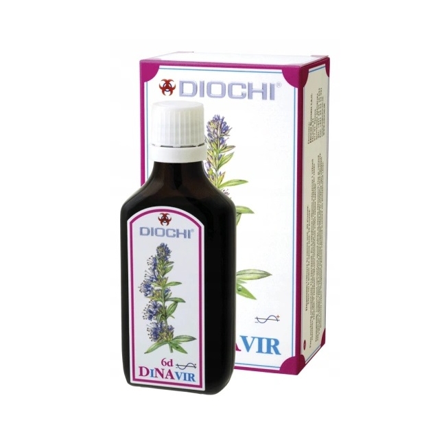 DIOCHI Dinavir to bioinformacyjny, wzmacniający i detoksykujący preparat roślinny, zawierający antyoksydanty. Formuła Dinavir zawiera zioła bogate w betaglukany oraz kompleks kwasów roślinnych, które wzmacniają układ immunologiczny w walce przeciwko rozmnażaniu retrowirusów – HIV, wirusów, mikrobów, bakterii i pleśni. Fitosubstancje zawarte w formule przyśpieszają regenerację komórek, aktywują szpik kostny, limfocyty CD4 i ograniczają ryzyko wystąpienia cukrzycy, grypy, anginy i chorób z przeziębienia.