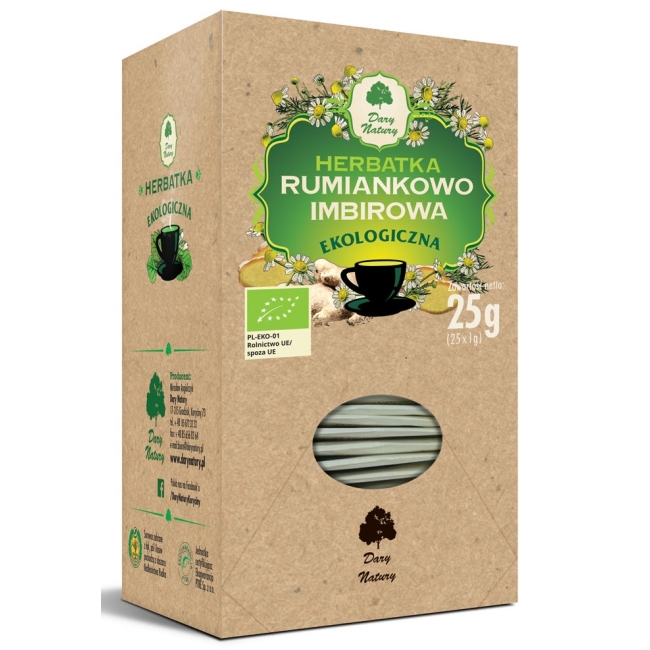 rumianek koszyczek* 80%, imbir* 20% (*certyfikowany składnik ekologiczny)