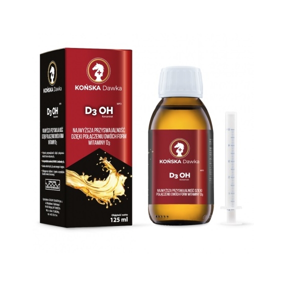 0,5 ml -2 ml/60-150 kg m.c. Na dzień lub zgodnie z zaleceniami. 1ml zawiera 50 000 IU D3.