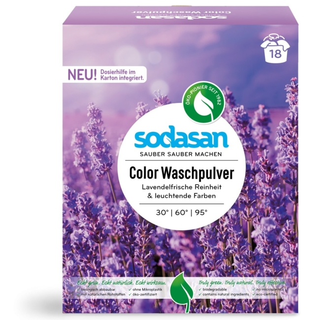 Proszek do prania na bazie ekologicznego mydła roślinnego i sody, dzięki którym uwalnia swą moc czyszczącą już przy 30 stopniach. Odpowiedni do prania w temperaturach 30° - 95°C wszystkich włókien tekstylnych z wyjątkiem wełny i jedwabiu.