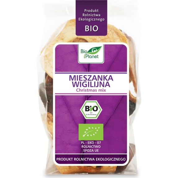 Ekologiczna mieszanka wigilijna to kompozycja najwyższej jakości suszonych owoców, opracowana według receptury Bio Planet. Jest podstawą wigilijnego kompotu. Polecamy również jako samodzielną przekąskę oraz jako dodatek do kasz i ryżu.
