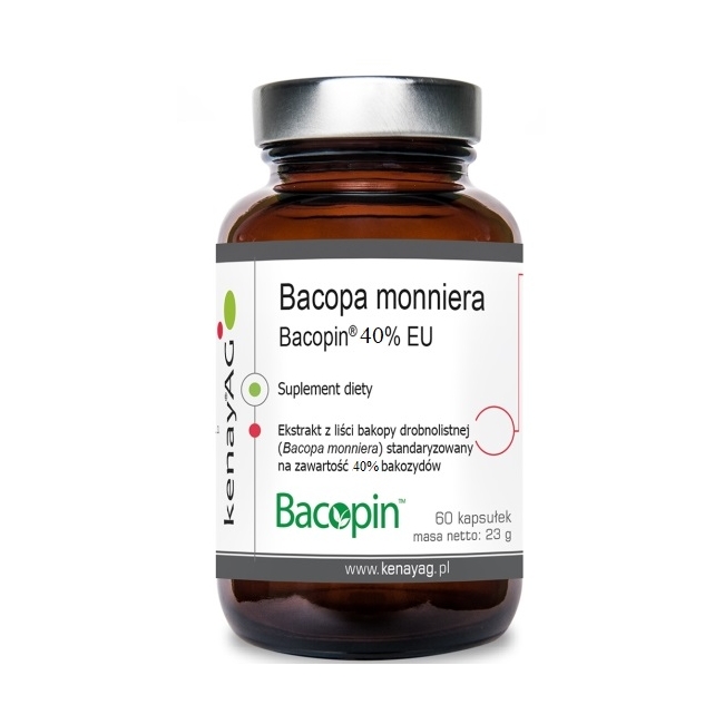 ekstrakt z liści bakopy drobnolistnej (Bacopa monniera) standaryzowany na zawartość bakozydów: 40%; substancja wypełniająca: inulina; kapsułka: hydroksypropylometyloceluloza.