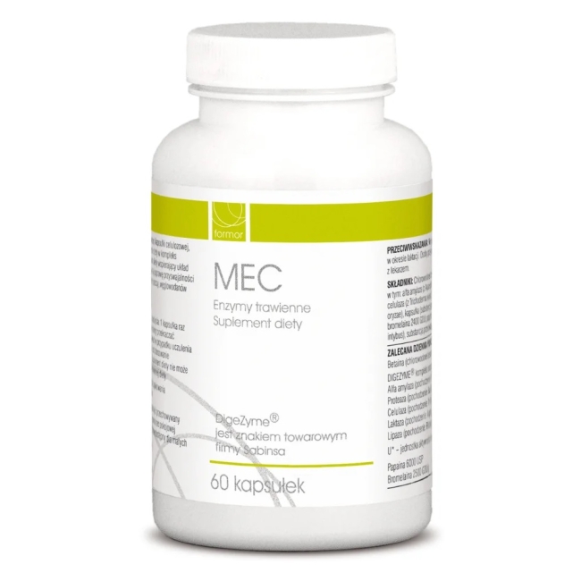 MEC Enzymy trawienne to suplement diety w postaci kapsułki celulozowej przeznaczony dla osób dorosłych jako uzupełnienie diety w kompleks enzymów trawiennych.