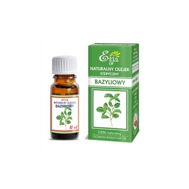 100% Naturalny olejek bazyliowy pozyskiwany w procesie destylacji parą wodną bazylii pospolitej. Posiada liczne właściwości zdrowotne i pielęgnacyjne. Działa silnie antybakteryjnie, antywirusowo i przeciwzapalnie. Stosowany w bakteryjnych chorobach skóry wykazuje dobre właściwości oczyszczające. Poprawia nastrój, dodaje sił, działa przeciwdepresyjnie. Przywraca równowagę, zmniejsza zmęczenie, stres oraz napięcie nerwowe. Wykorzystywany jest często przy bólach głowy, przeziębieniu, katarze i kaszlu. Łagodzi skutki ukąszeń przez osy i inne owady.