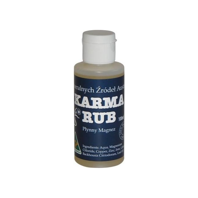 Karma Rub jest skoncentrowaną esencją Australijskich źródeł mineralnych. W 100% produkt jest naturalny, zawiera bardzo dużą ilość (aż 22%) magnezu oraz śladowe ilości cynku, żelaza, miedzi oraz litu. Idealny na dyskomfort Twoich mięśni, stawów itp.