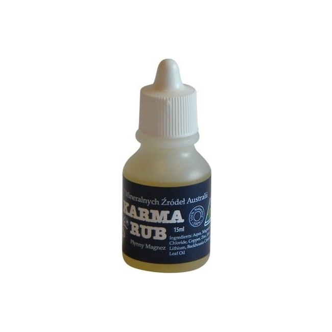 Karma Rub jest skoncentrowaną esencją Australijskich źródeł mineralnych. W 100% produkt jest naturalny, zawiera bardzo dużą ilość (aż 22%) magnezu oraz śladowe ilości cynku, żelaza, miedzi oraz litu. Idealny na dyskomfort Twoich mięśni, stawów itp.