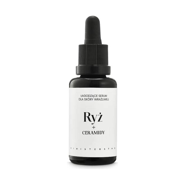 Ministerstwo Dobrego Mydła, Ryż + ceramidy - łagodzące serum do twarzy, 30 ml to kosmetyk przeznaczony do pielęgnacji każdego rodzaju skóry. Zawiera w składzie m.in.: wegańskie ceramidy i ekstrakty roślinne.