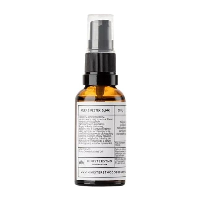 Olej z pestek śliwki Ministerstwa Dobrego Mydła oprócz pielęgnacji twarzy znajduje również zastosowanie jako wzmacniający olejek do paznokci i włosów. Zapobiega rozdwajaniu końcówek i sprawia, że pasma stają się aksamitnie gładkie i lśniące. Stosowany na paznokcie wspiera ich regenerację i poprawia poziom odżywienia.