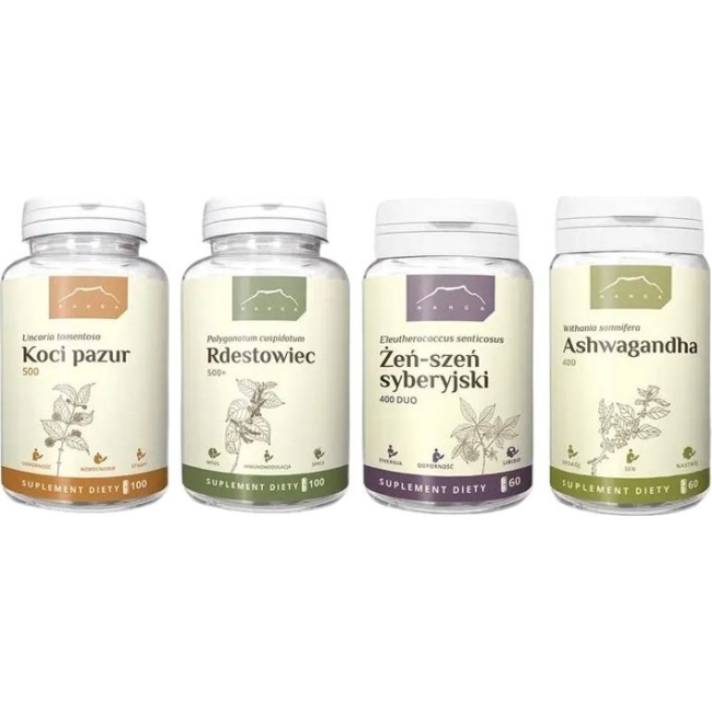 Jedna kapsułka zawiera 200 mg mielonego korzenia ashwagandhy oraz 200 mg ekstraktu z ashwagandhy.