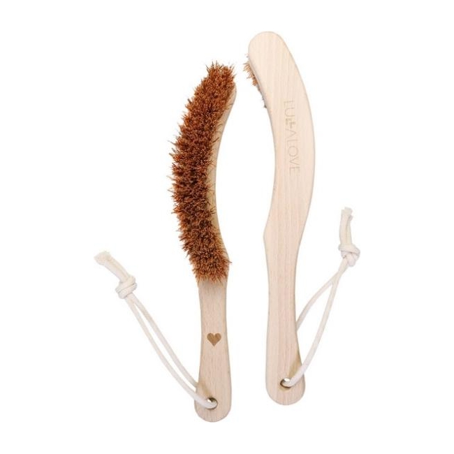 Wyjątkowa, profesjonalna szczotka z włóknem z kokosa - ostra w odczuciu, ale łagodna dla struktury skóry. Zastosowane tu włókno daje uczucie mocnego masażu, jednocześnie będąc na tyle sprężyste, że nie daje efektu zbyt mocnego złuszczenia martwego naskórka. Nietypowy kształt sierpa, ułatwia szczotkowanie pleców, świetnie sprawdza się przy pośladkach, udach czy talii. Rączka daje przedłużenie szczotki, więc bez problemu można dosięgnąć nią również do stóp, przy ograniczonej mobilności ciała. Jest niezwykle wygodna w użyciu.