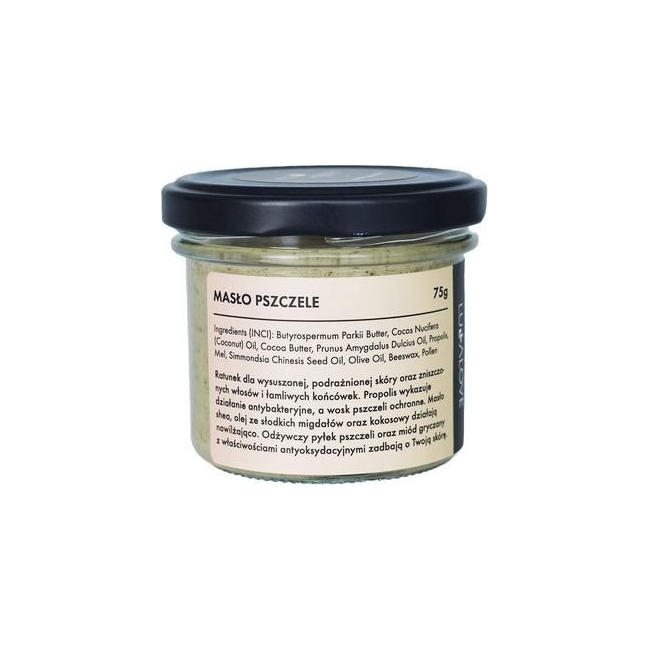 Uwaga: pyłek pszczeli, czyli drobinki z masła, nie wchłania się. Po chwili od aplikacji należy go usunąć, np. ręcznikiem. Masło ma niejednorodną konsystencję.
