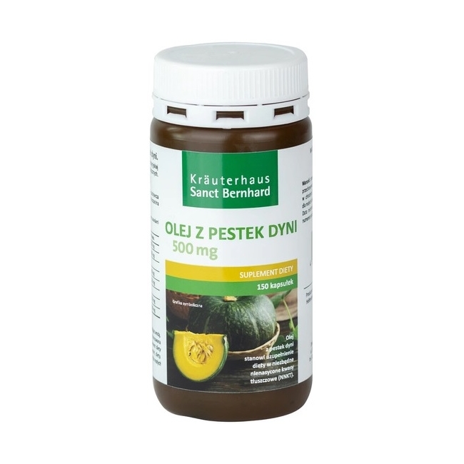 Każda kapsułka zawiera 500 mg czystego oleju z pestek dojrzałych dyni.