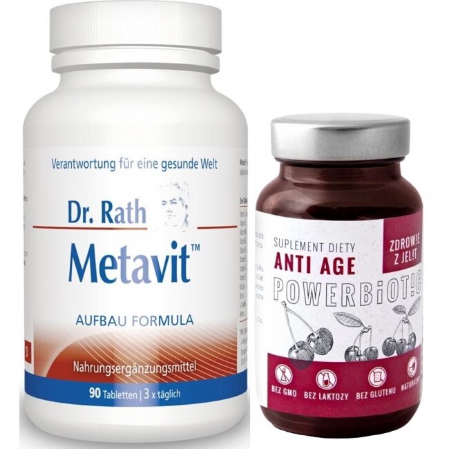 Dr Rath Metavit 90 tabletek + Powerbiotic Anti Age Wiśnia 60 kapsułek Ecobiotics