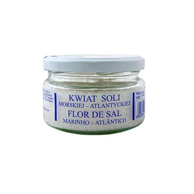 Kwiat soli to najcenniejszy z solnych produktów. Gromadzi się w postaci wykwitów kryształów solnych na powierzchni wody morskiej (w stawach do odparowywania) pod wpływem działania naturalnej energii słońca i wiatru. Wykwity zbierane są na co dzień ręcznie grabkami i suszone na powietrzu. Nasz kwiat soli powstaje z wolnych od zanieczyszczeń otwartych wód Atlantyku w rezerwacie przyrody Ria Formosa w rejonie Algarve. Produkt całkowicie naturalny, nierafinowany, pozyskiwany w tym miejscu od stuleci.