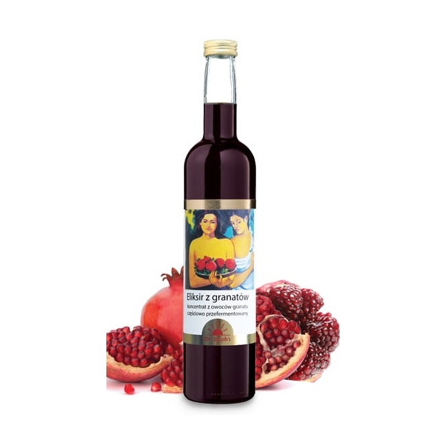 Eliksir z granatu Dr. Jacob’s, zwany eliksirem młodości, zawiera 21 razy więcej antyoksydantów niż świeży sok z granatów i dużo razy więcej od znanych napojów o działaniu przeciwutleniającym.
